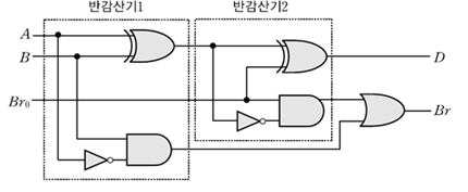 반감산기 : 2진수 1자리의 두 개의 비트를 빼는 회로