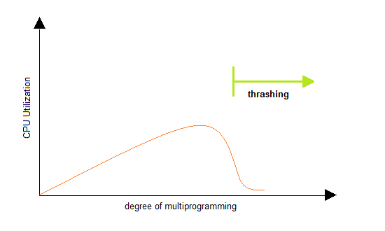 다중 프로그래밍 정도가 높아지면서(동시 실행 프로세스 수 증가) 메모리에 페이지 폴트가 많이 일어나