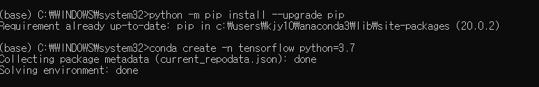 첫 번째 줄은 pip 업데이트, 두 번째 줄은 가상환경 만들기입니다.